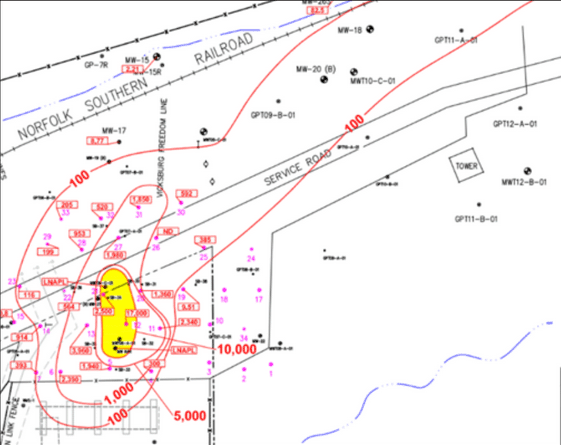 - Approximately 30,000 tons of impacted soil were removed to approximately 4 ft where accessible. Free product recovery via groundwater extraction and long-term groundwater monitoring was conducted at the facility following the release; the groundwater extraction system was shut down in 2012.